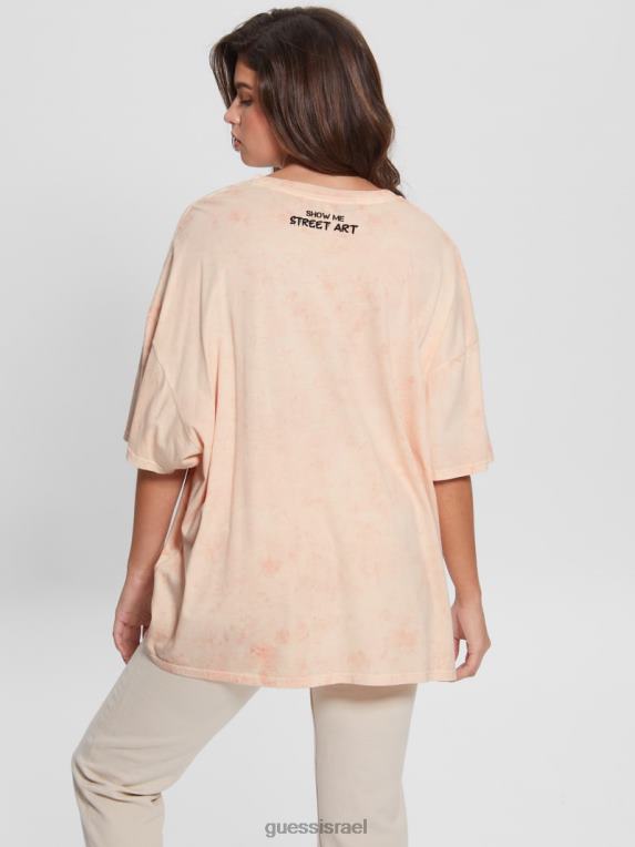 GUESS נשים טי אוברסייז של מרטיני מאוס F8RV1173 לבוש שלום אפרסק מולטי