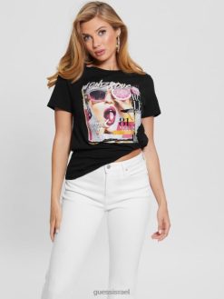 GUESS נשים טי גרפי מגזין נפלא F8RV1157 לבוש שָׁחוֹר