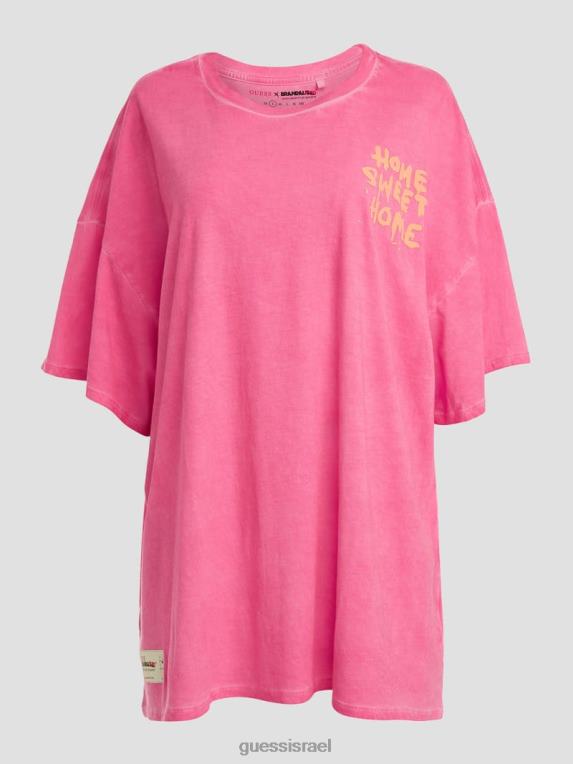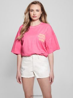 GUESS נשים טי טרקלין ביתי מתוק F8RV1037 לבוש בולט ורוד פוקסיה מול