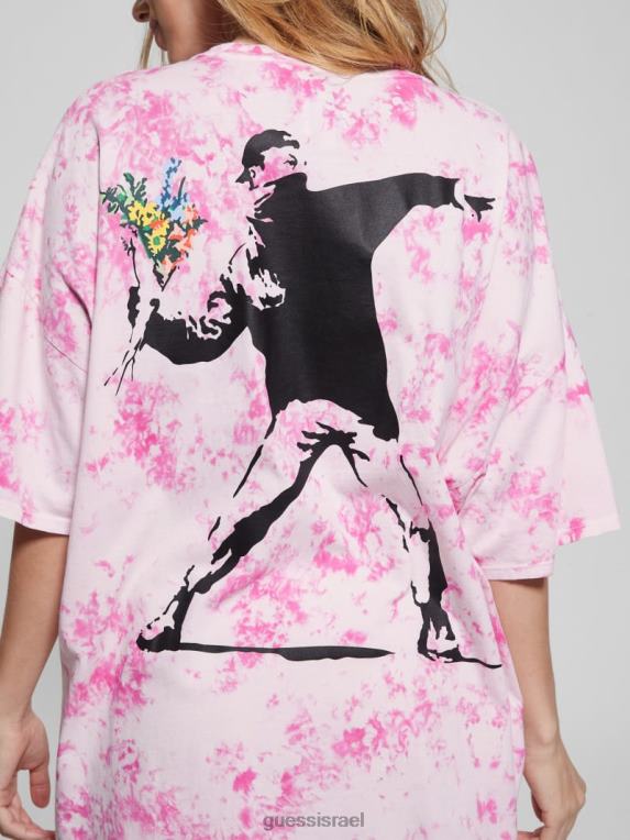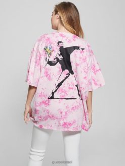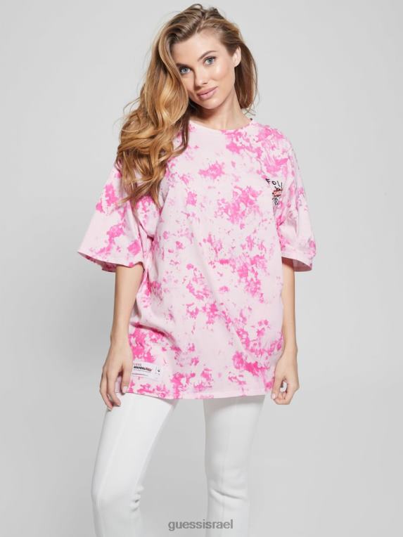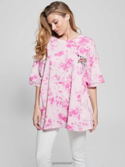 GUESS נשים טי טרקלין לזרוק פרחים גדול מדי F8RV1257 לבוש בולט ורוד פוקסיה מול