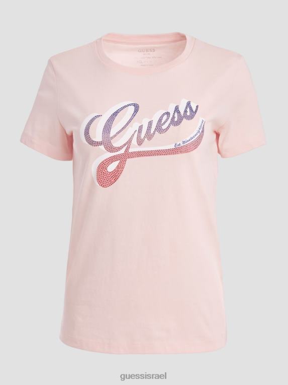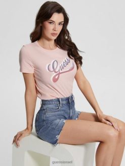 GUESS נשים טי לוגו בגוון אקולוגי F8RV1459 לבוש ורוד רגוע