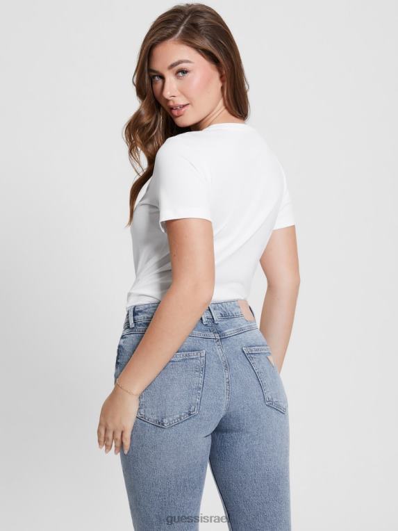 GUESS נשים טי לוגו יהלומים עם צווארון אקולוגי F8RV1259 לבוש לבן טהור