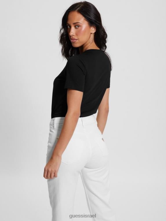 GUESS נשים טי לוגו יהלומים עם צווארון אקולוגי F8RV1295 לבוש שָׁחוֹר