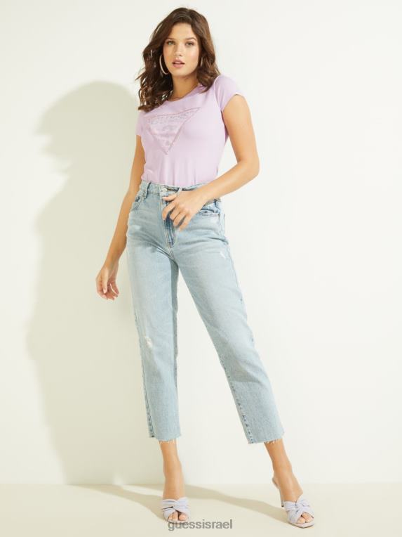 GUESS נשים טי לוגו מעוטר F8RV1715 לבוש לילך בהיר חדש