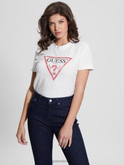 GUESS נשים טי לוגו משולש אקולוגי F8RV1217 לבוש לבן טהור