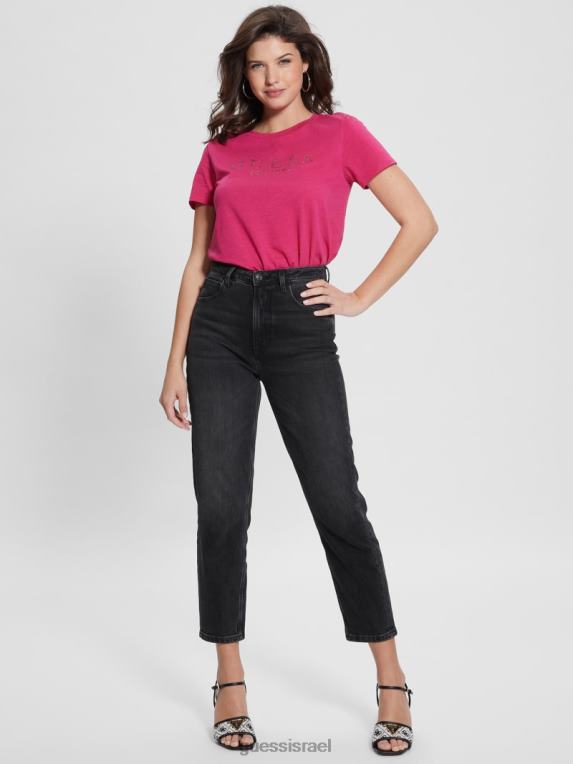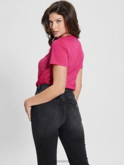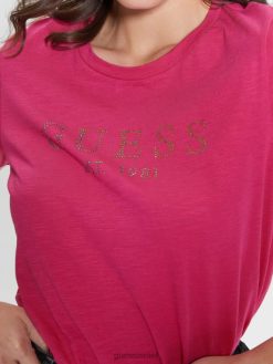 GUESS נשים טי לוגו קריסטל אקו 1981 F8RV1202 לבוש ורוד פריחה מלאה
