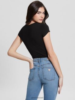 GUESS נשים טי לוגו ריינסטון F8RV1058 לבוש שָׁחוֹר