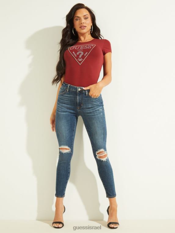 GUESS נשים טי לוגו ריינסטון F8RV1582 לבוש מיץ סלק אדום