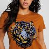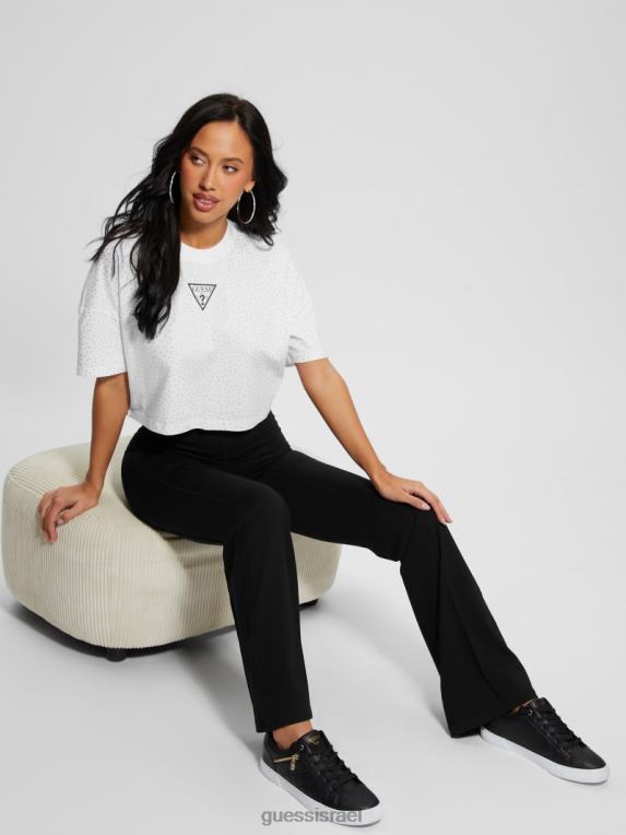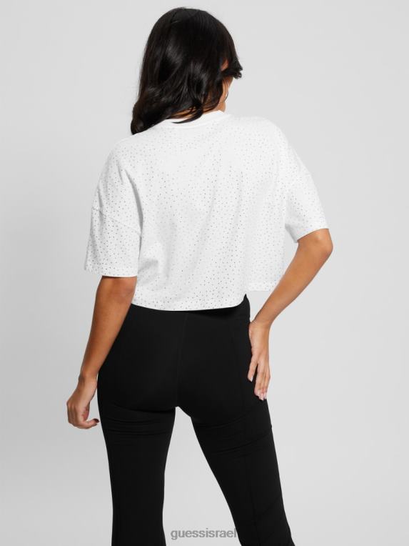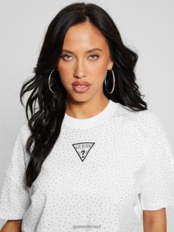 GUESS נשים טי לוגו של כוכבים ריינסטון F8RV963 לבוש לבן טהור