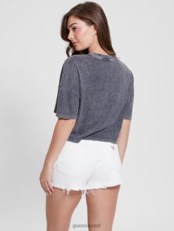 GUESS נשים טי לוגו של כוכבים ריינסטון F8RV994 לבוש חומצה שחורה