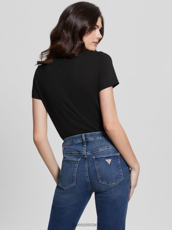 GUESS נשים טי לוגו של נצנצים בגוונים אקולוגיים F8RV1478 לבוש שָׁחוֹר