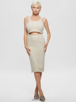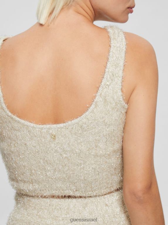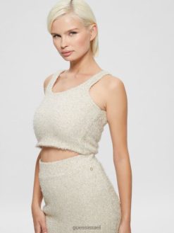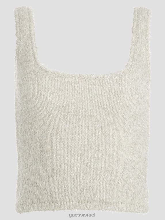 GUESS נשים טנק סוודר מטושטש טינסלי F8RV1509 לבוש מולטי שמנת לבן