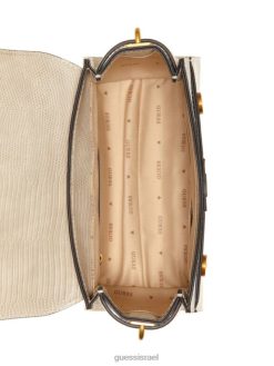 GUESS נשים ידית עליונה במרקם ג’ינברה F8RV2834 תיקים אָפוֹר חוּם