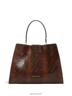 GUESS נשים ילקוט עור בהדפס מוני פיתון F8RV3281 תיקים חום