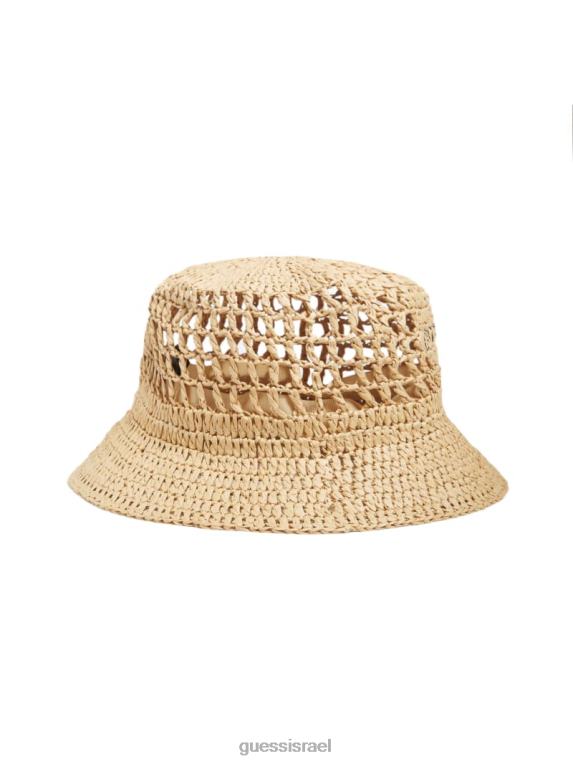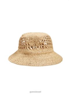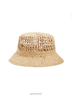 GUESS נשים כובע דלי קש מיראז’ F8RV3782 אבזר לבן