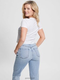 GUESS נשים לָה. חולצה עם צווארון 1981 F8RV1070 לבוש לבן טהור