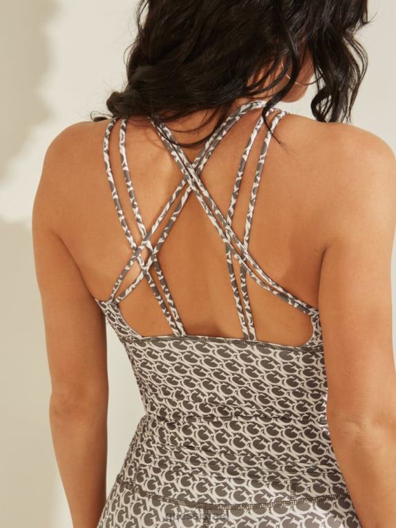 GUESS נשים לוגו קייטלין חלק עליון פעיל F8RV2520 לבוש allover gj light חום