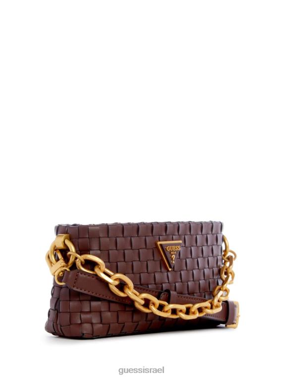 GUESS נשים מיני רוכסן קרוסבודי ארוג ליסבט F8RV2858 תיקים מַהֲגוֹנִי