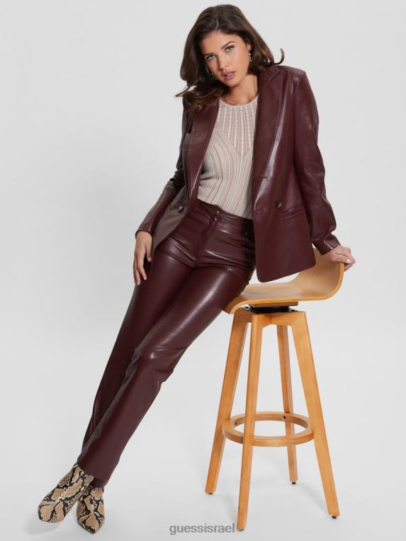GUESS נשים מכנסיים ישרים מעור מלאכותי של קלי F8RV2222 לבוש מולטי יין מיסטי