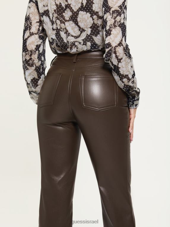 GUESS נשים מכנסיים ישרים מעור מלאכותי של קלי F8RV2277 לבוש ג’אווה חדשה