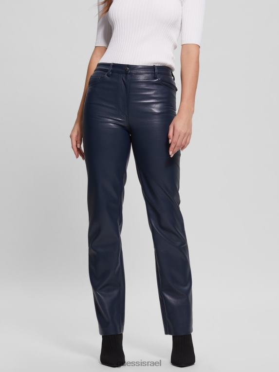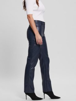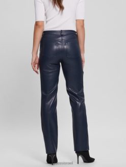 GUESS נשים מכנסיים ישרים מעור מלאכותי של קלי F8RV2294 לבוש כחול מושחר