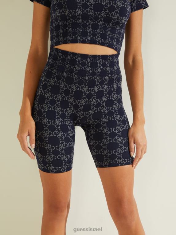 GUESS נשים מכנסיים קצרים בהדפס לוגו של דלה F8RV2357 לבוש 4 גרם ג’קארד ימי
