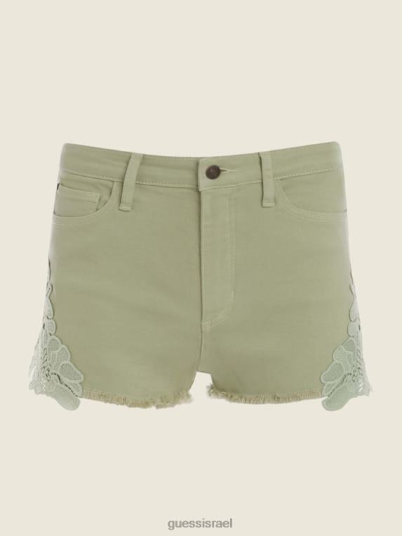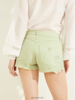 GUESS נשים מכנסי מידי קצרים משנת 1981 F8RV77 לבוש חזזית עלה ירוק רב
