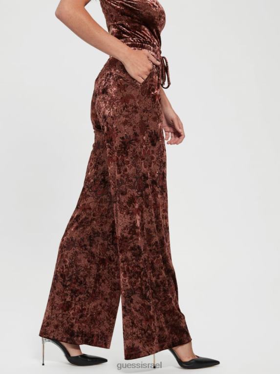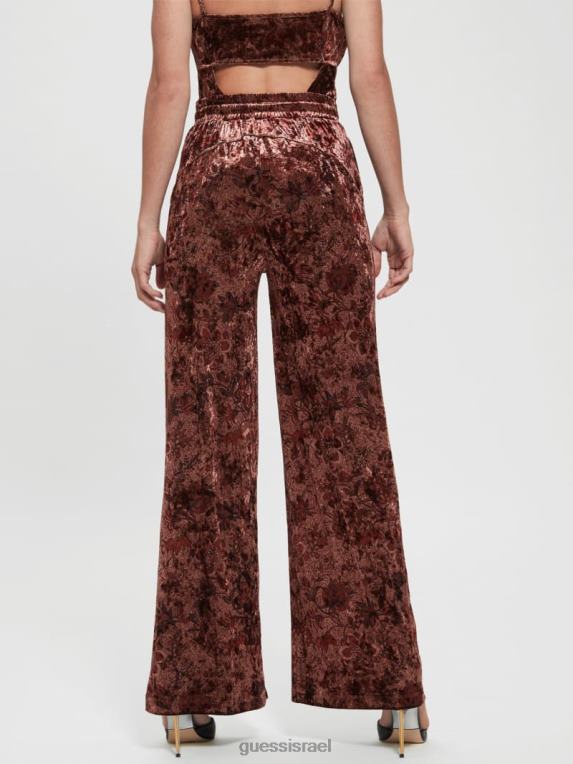 GUESS נשים מכנסיים רחבי קטיפה ירקן F8RV2349 לבוש הדפס פרחוני של שוק התבלינים