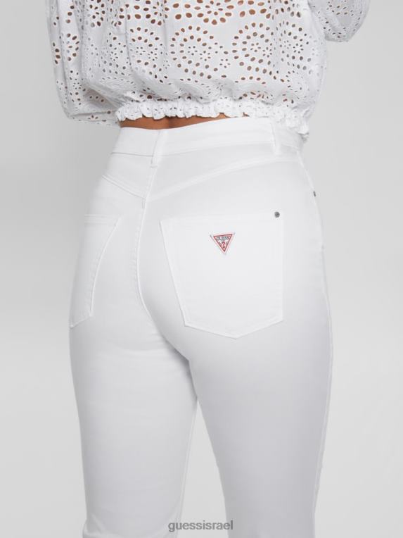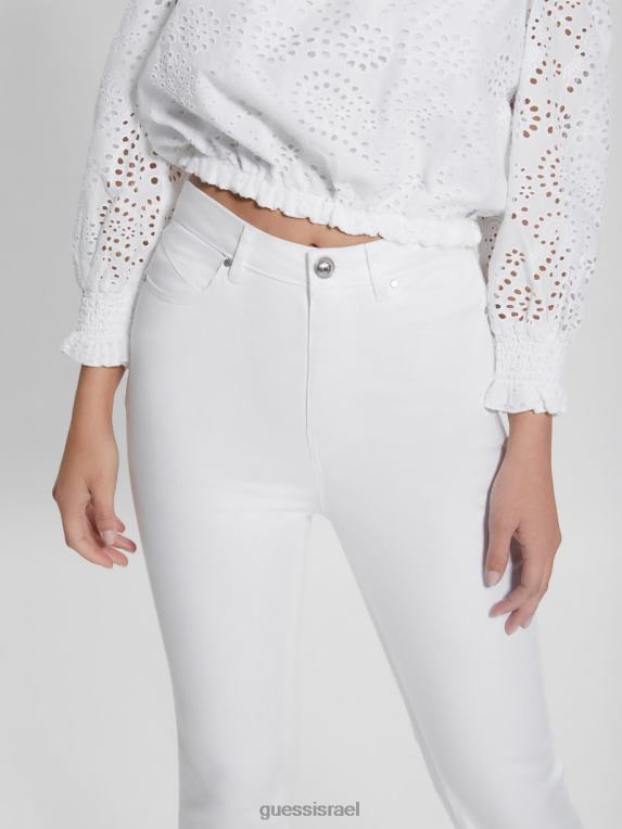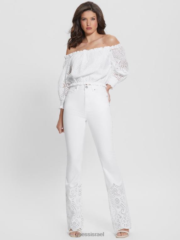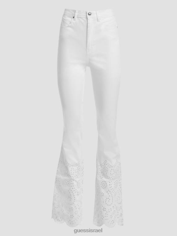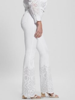 GUESS נשים מכנסיים רקומים מתרחבים F8RV98 לבוש לבן טהור