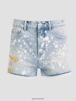 GUESS נשים מכנסיים קצרים רקומים משנת 1981 F8RV247 לבוש אפרסק ברולה מולטי