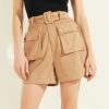 GUESS נשים מכנסי מידי קצרים משנת 1981 F8RV77 לבוש חזזית עלה ירוק רב