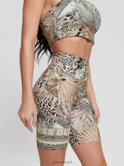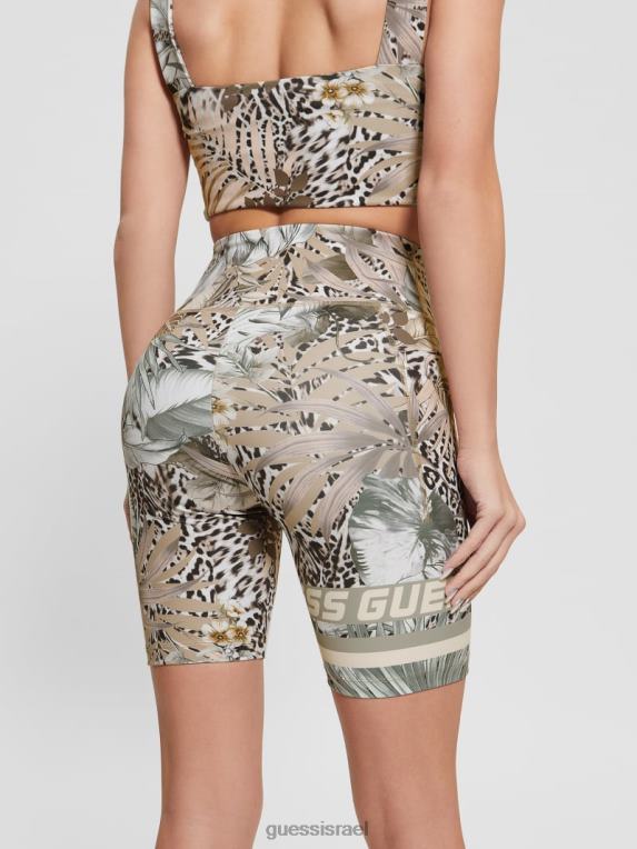 GUESS נשים מכנסי מידי קצרים משנת 1981 F8RV77 לבוש חזזית עלה ירוק רב