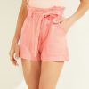 GUESS נשים מכנסיים קצרים רקומים משנת 1981 F8RV247 לבוש אפרסק ברולה מולטי