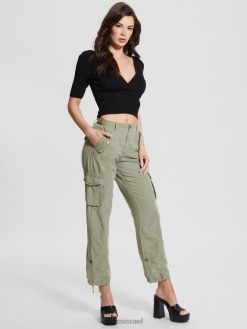 GUESS נשים מכנסי אקו nessi פשתן מטען F8RV2016 לבוש מרווה אוקיינוס מולטי