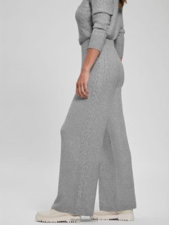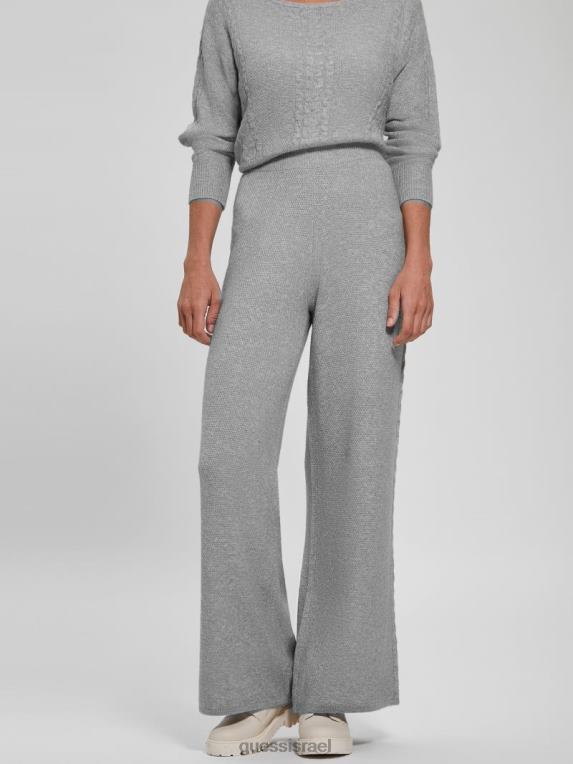 GUESS נשים מכנסי כבלים רחבים של תרזה F8RV2311 לבוש אפור מלאנז’ בהיר