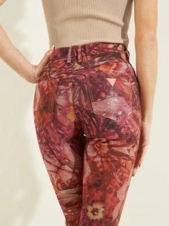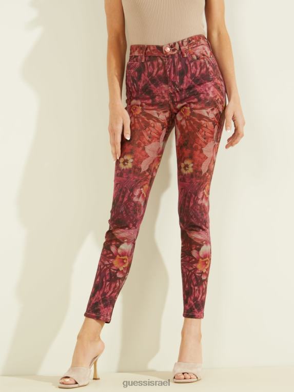 GUESS נשים מכנסי סקיני טרופיים משנת 1981 F8RV256 לבוש הדפס טרופי בטיק ורוד