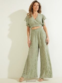 GUESS נשים מכנסי פאלאצו רקומים של דקסי F8RV2197 לבוש מאצ’ה קלה מולטי