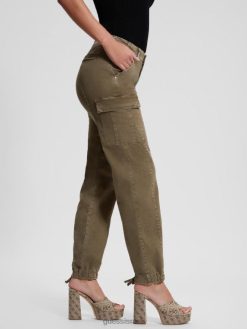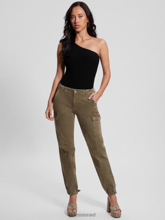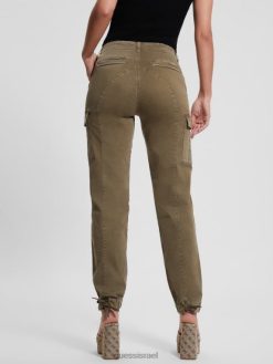 GUESS נשים מכנסי צ’רי קרגו F8RV2032 לבוש ירוק מדבר