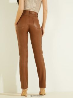 GUESS נשים מכנסי קרוליין F8RV2324 לבוש מולטי חום קיסר