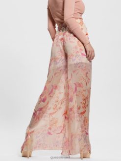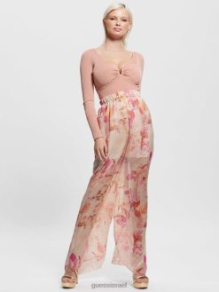 GUESS נשים מכנסי רגליים רחבות של רוקסן F8RV2316 לבוש כבש מחדש את הרומנטיקה