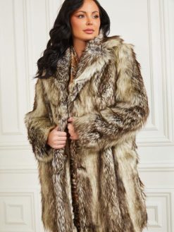GUESS נשים מעיל לוקרציה F8RV1794 לבוש בז’ וחום מעורב