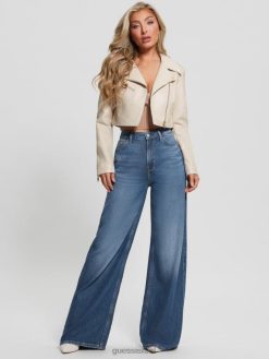 GUESS נשים מעיל מוטו דמוי עור רושל F8RV1733 לבוש צדפת פנינה