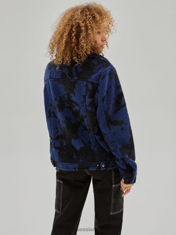 GUESS נשים מעיל משאית שרפה מקורי F8RV1785 לבוש גולשים כחול מולטי