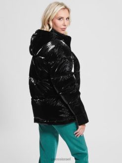 GUESS נשים מעיל נפוח מטאלי ארקטי F8RV1971 לבוש מולטי שחור ג’ט