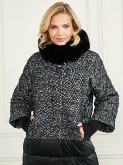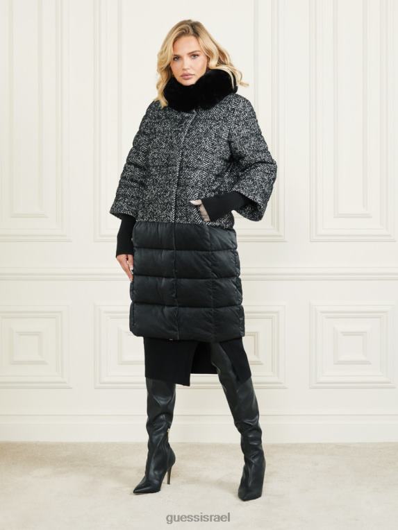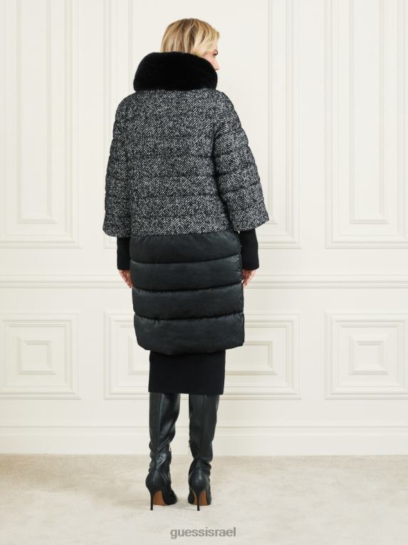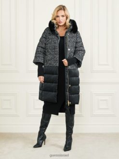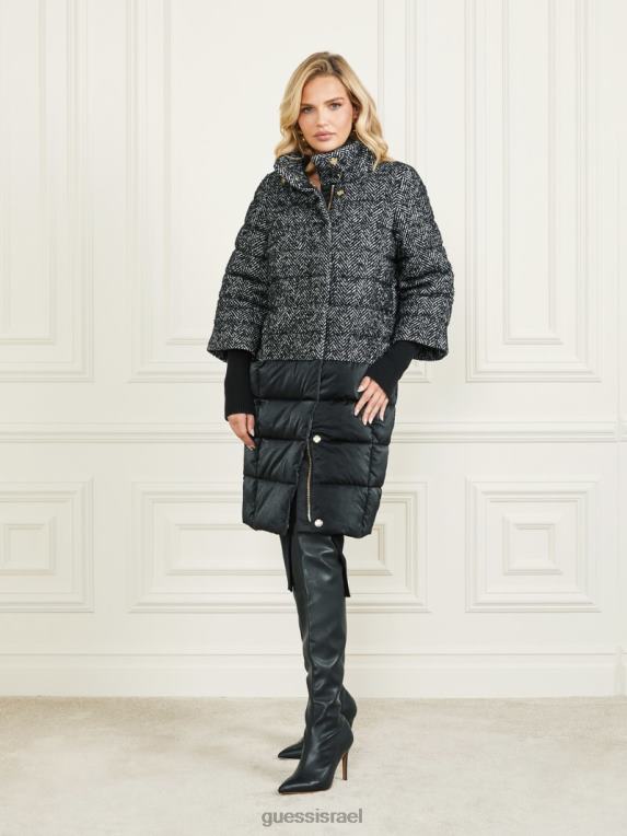 GUESS נשים מעיל נשף אבי F8RV1981 לבוש שברון שחור ולבן