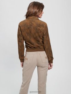 GUESS נשים מעיל עור מארי F8RV1855 לבוש מולטי אלון חום
