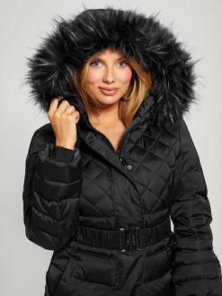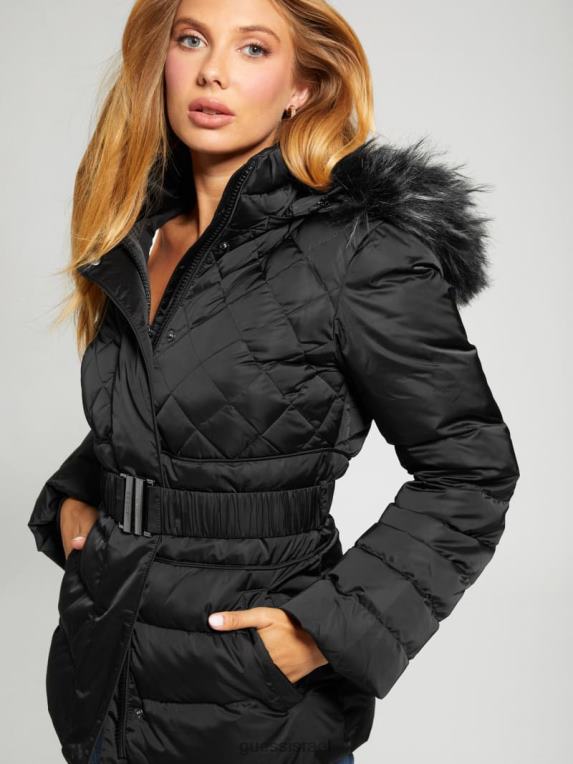 GUESS נשים מעיל פוך אקו לורי F8RV1953 לבוש שָׁחוֹר