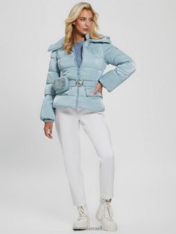 GUESS נשים מעיל פחזנית שימר אקולוגי F8RV1990 לבוש שמיים בין ערביים