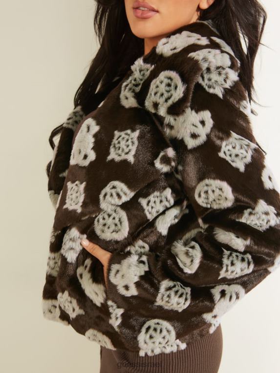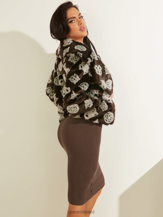 GUESS נשים מעיל פרווה מלאכותית לוגו של maddalena F8RV1829 לבוש 4 גרם משולבת חום ג’קארד