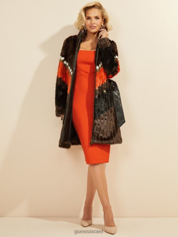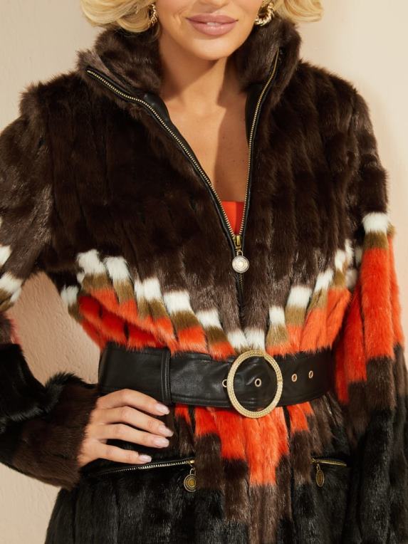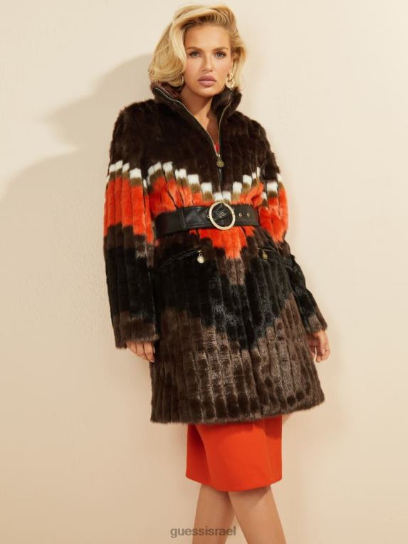 GUESS נשים מעיל פרווה מלאכותית של ג’ודי F8RV1934 לבוש תפוז שברון